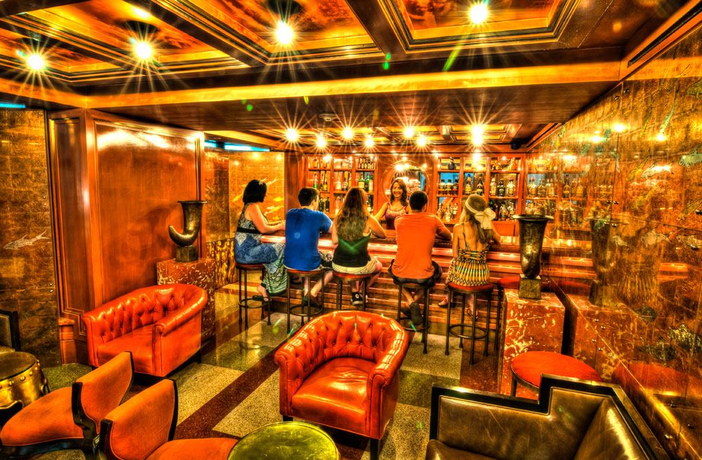 This decadent bar is part of The Tides - we enjoyed our refreshing mojitos as we stepped back in time. Looking forward to the deco theme, I veered away from my typical leopard garb and wore a sundress in a wash of sherbet colors that was complimented by a stylish straw hat!