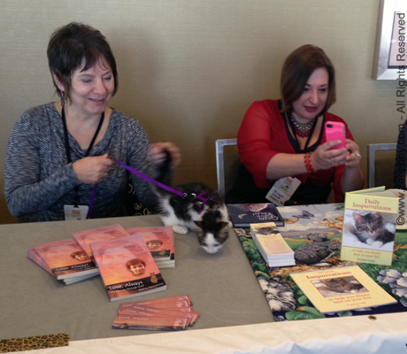 Cat Holm (left) at one of our book signing events along with Sangria the kitten who came with Jeanne Kudich of Random Felines.
