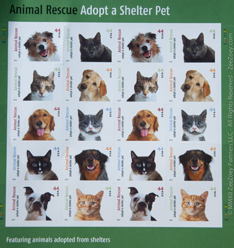 These stamps that were issued in March of 2010 were part of a campaign to increase public awareness about shelter pets and to encourage adoptions. Ellen DeGeneres and Halo pet foods also teamed up with the campaign and donated a million meals to shelter pets.