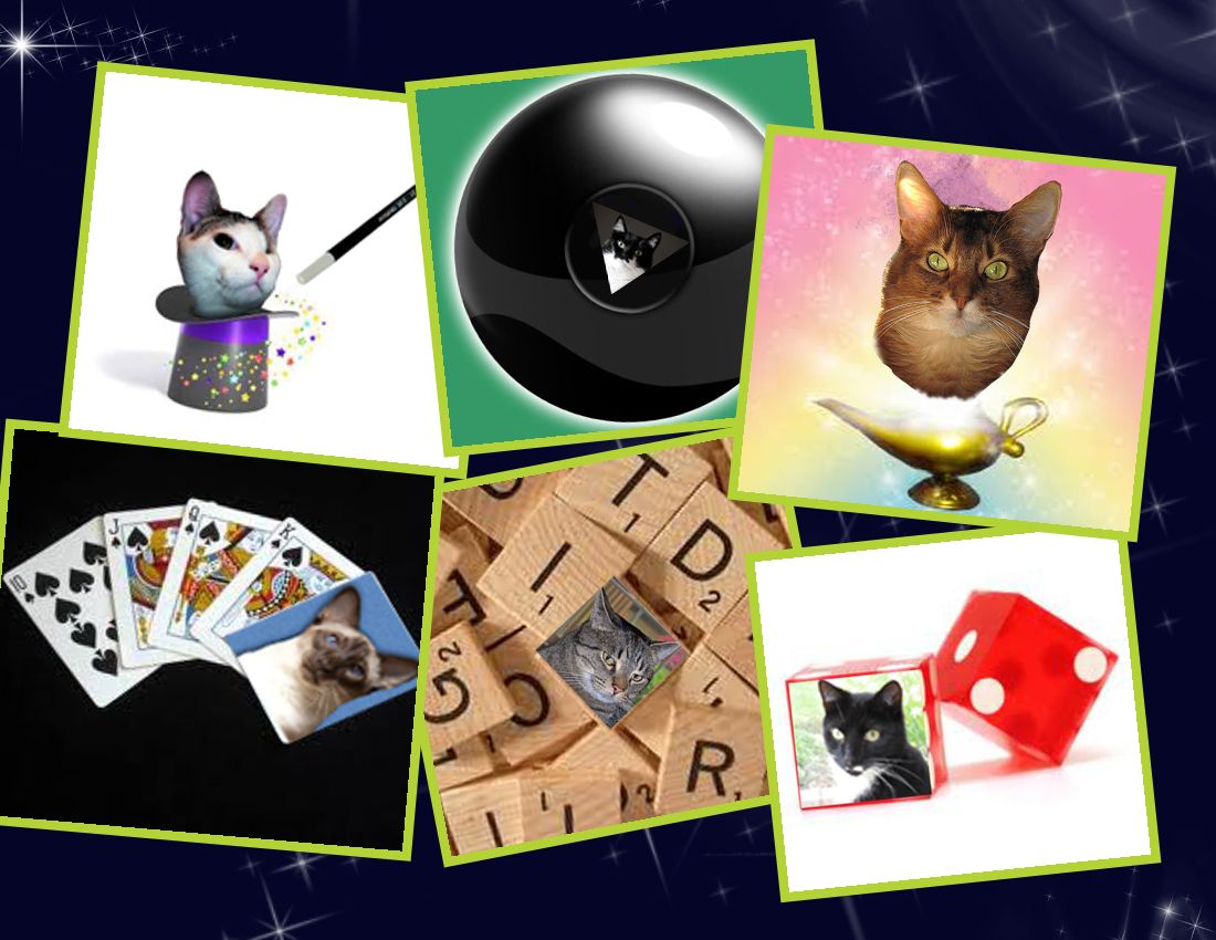 Wow… when I wondered yesterday what magic, trickery, and games Zee and Zoey had up their paws to help me with all the mystery cat stuff that had been shipped to my house, I had no idea they were up to real magic, trickery, and games. I can’t even begin to understand what is going on with these crafty kitties, or how or why they have conjured up what looks like other cats. And not just other cats, I somehow get the nagging feeling that I know who these cats are, but I just can’t place them in my cluttered and tired mind at the moment…