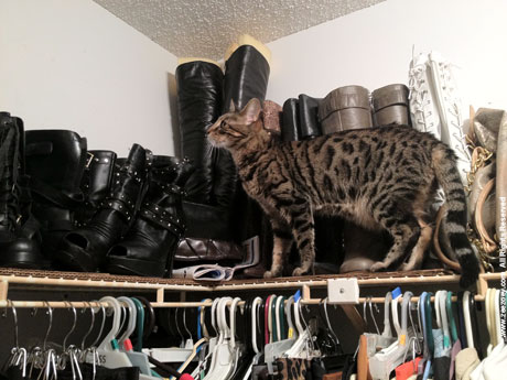 13. Ok I have to admit what stole my attention away from the cats was your shoe collection! I don’t feel so bad thinking I was second to Imelda Marcos having a hundred pair of shoes an my own shoe closet. You have way more boots! Those black platform studded shoes–that’s some wild pair I never pictured you in. Deb is there something from this closet that is trying to come out? a past life???
